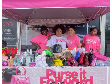 Collecting purses and toiletries for the unhoused community.